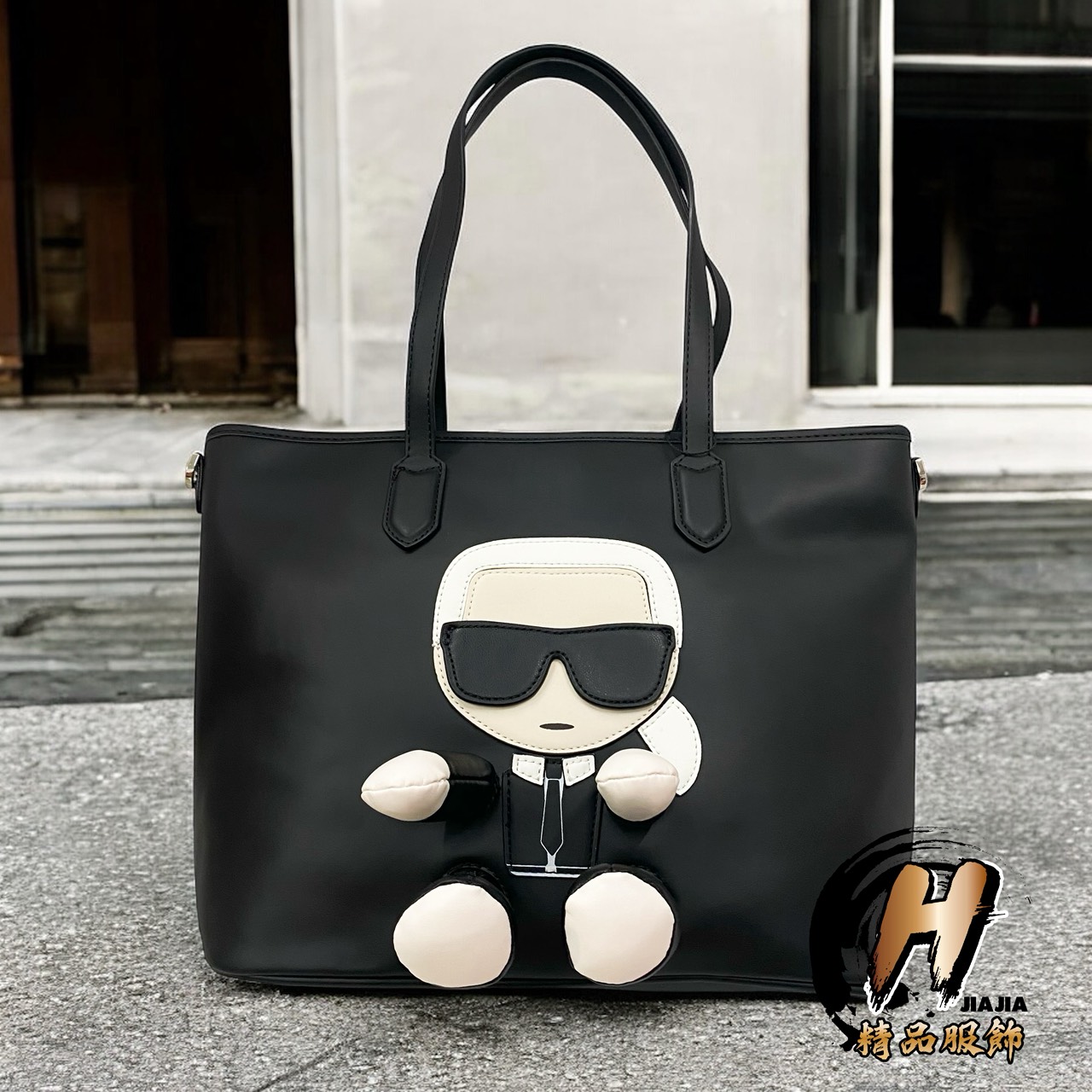 KARL LAGERFELD 新款卡爾 Q版Logo人像 老佛爺爺 黑色 手提包 斜背包 殺手包✅正品代購