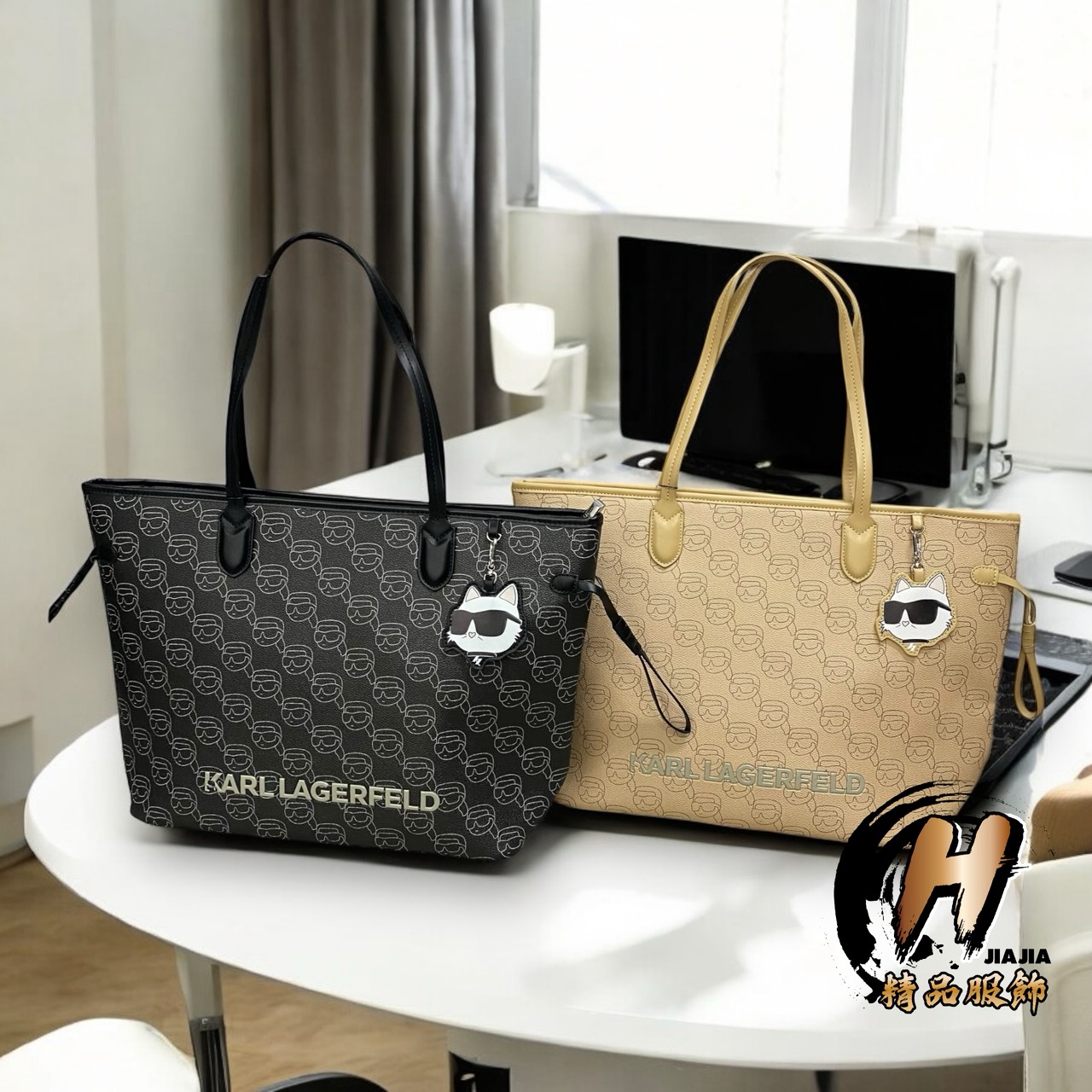KARL LAGERFELD 25ss 專櫃新款卡爾 滿版Logo 浮雕文字款 老佛爺爺 皮革 托特包