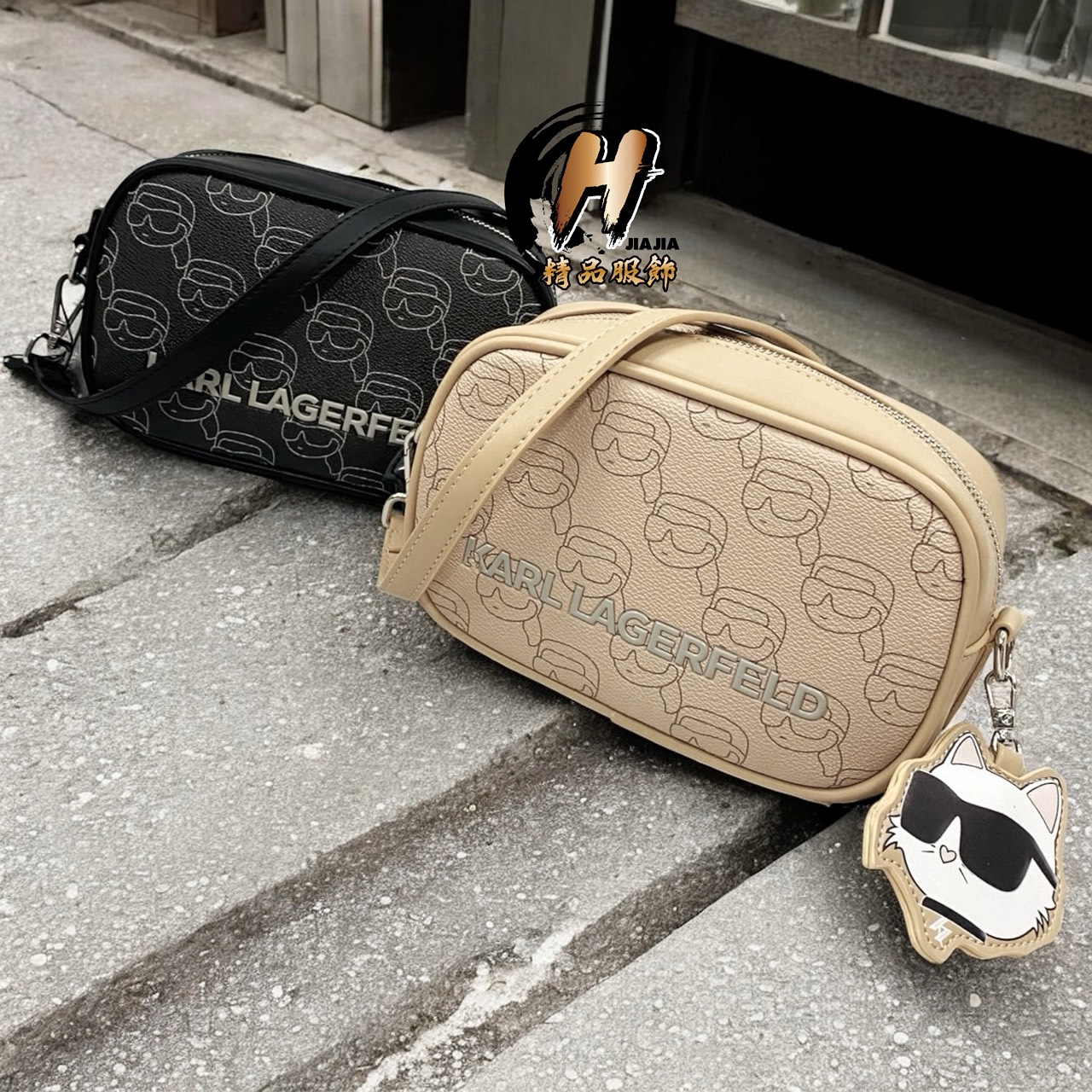 KARL LAGERFELD 25ss 專櫃新款卡爾 滿版Logo 浮雕文字款 老佛爺爺 相機包 側背包
