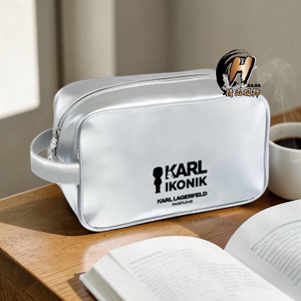 KARL LAGERFELD 卡爾 時尚大帝 極光銀 多功能 手拿包 收納包