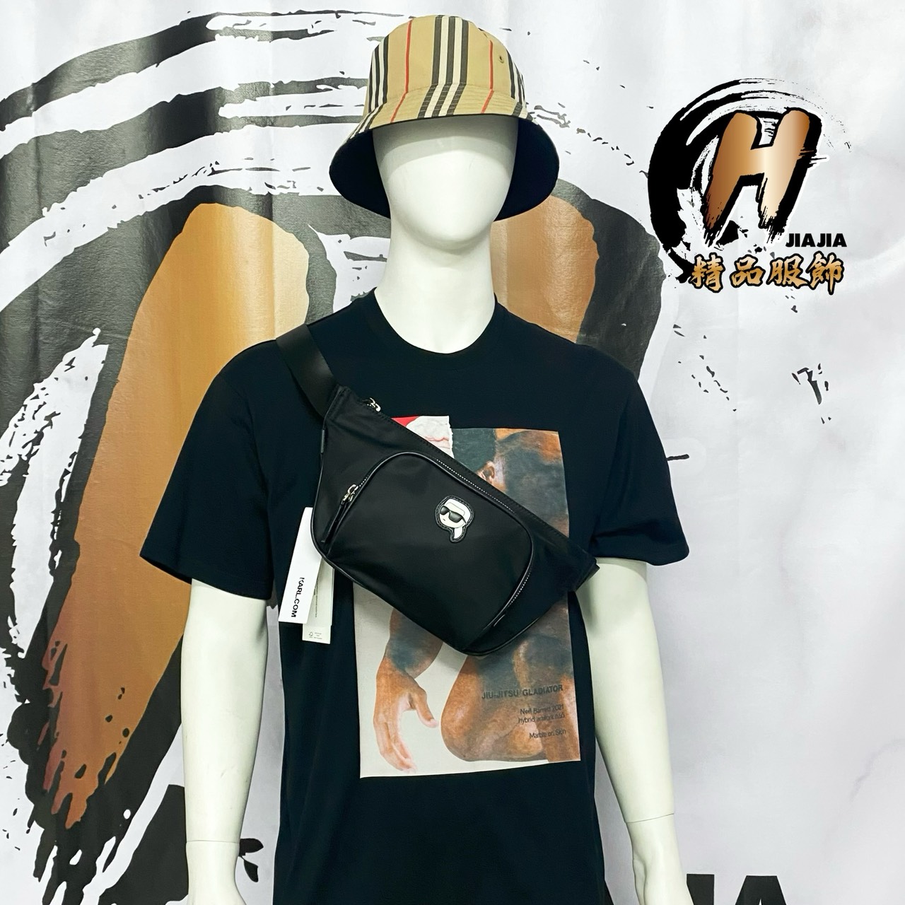 KARL LAGERFELD 新款卡爾 經典小Logo 老佛爺爺 黑色 雙層腰包 胸包✅正品代購