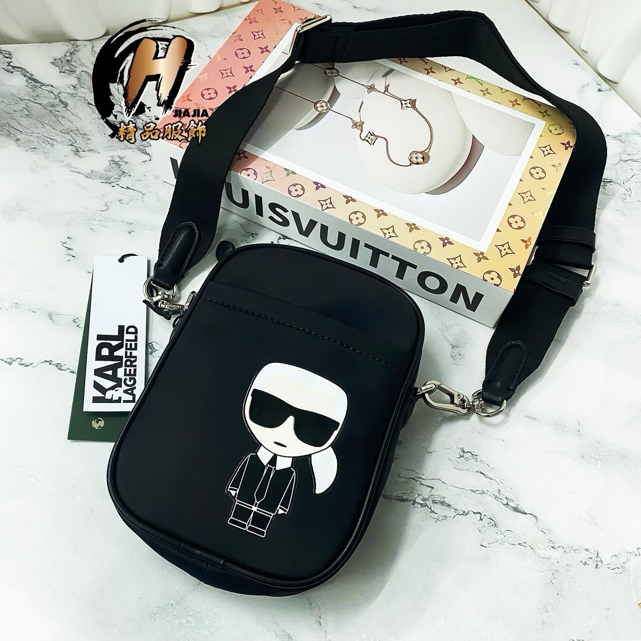 KARL LAGERFELD 新款卡爾 經典Logo人像 老佛爺爺 黑色 手機包 斜背包✅正品代購