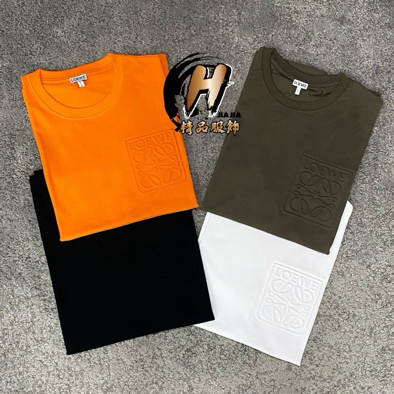 LOEWE 立體浮雕壓印 胸前大Logo 黑/白/橘/綠 素T 短袖✅現貨秒發