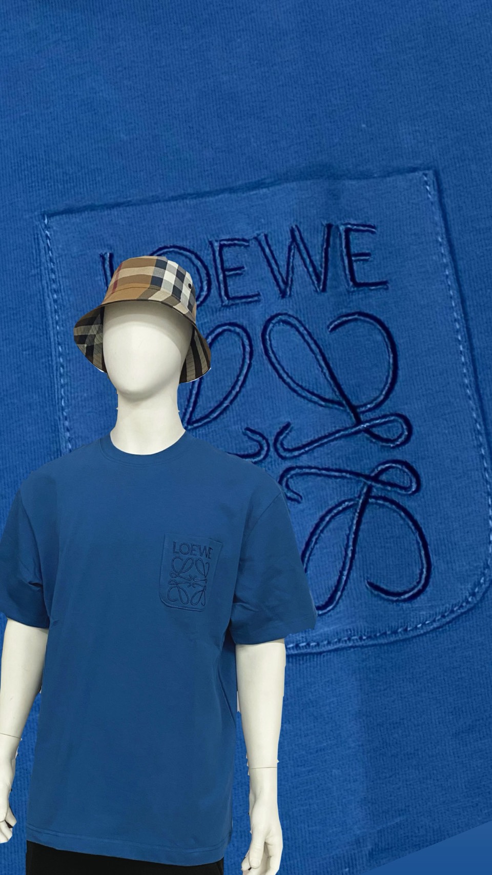 LOEWE 新款 經典Logo 刺繡口袋款 藍色 素T 短袖