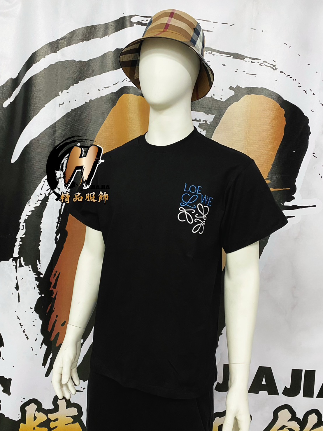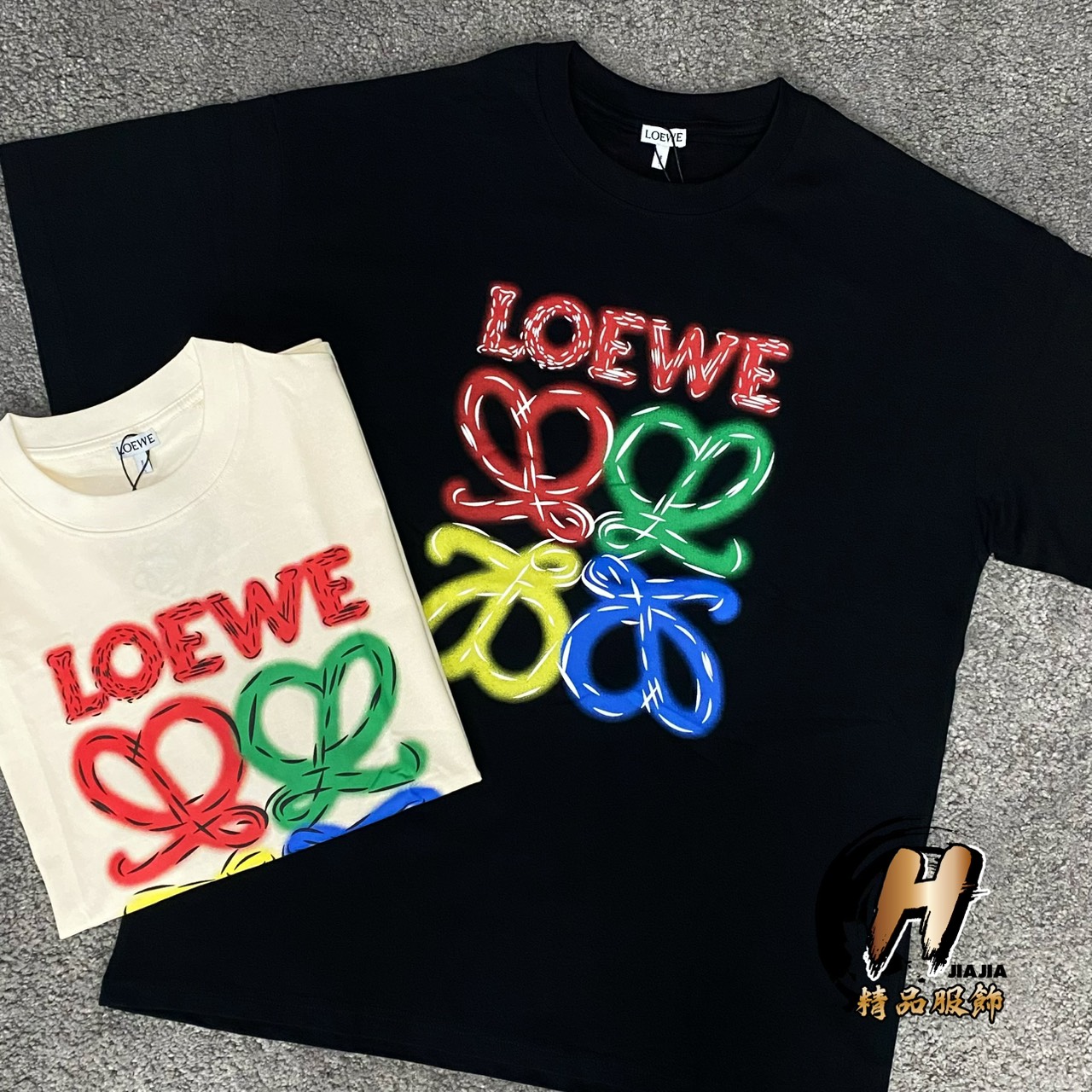 LOEWE 新款 雙色刺繡 錯位Logo 黑色 短袖