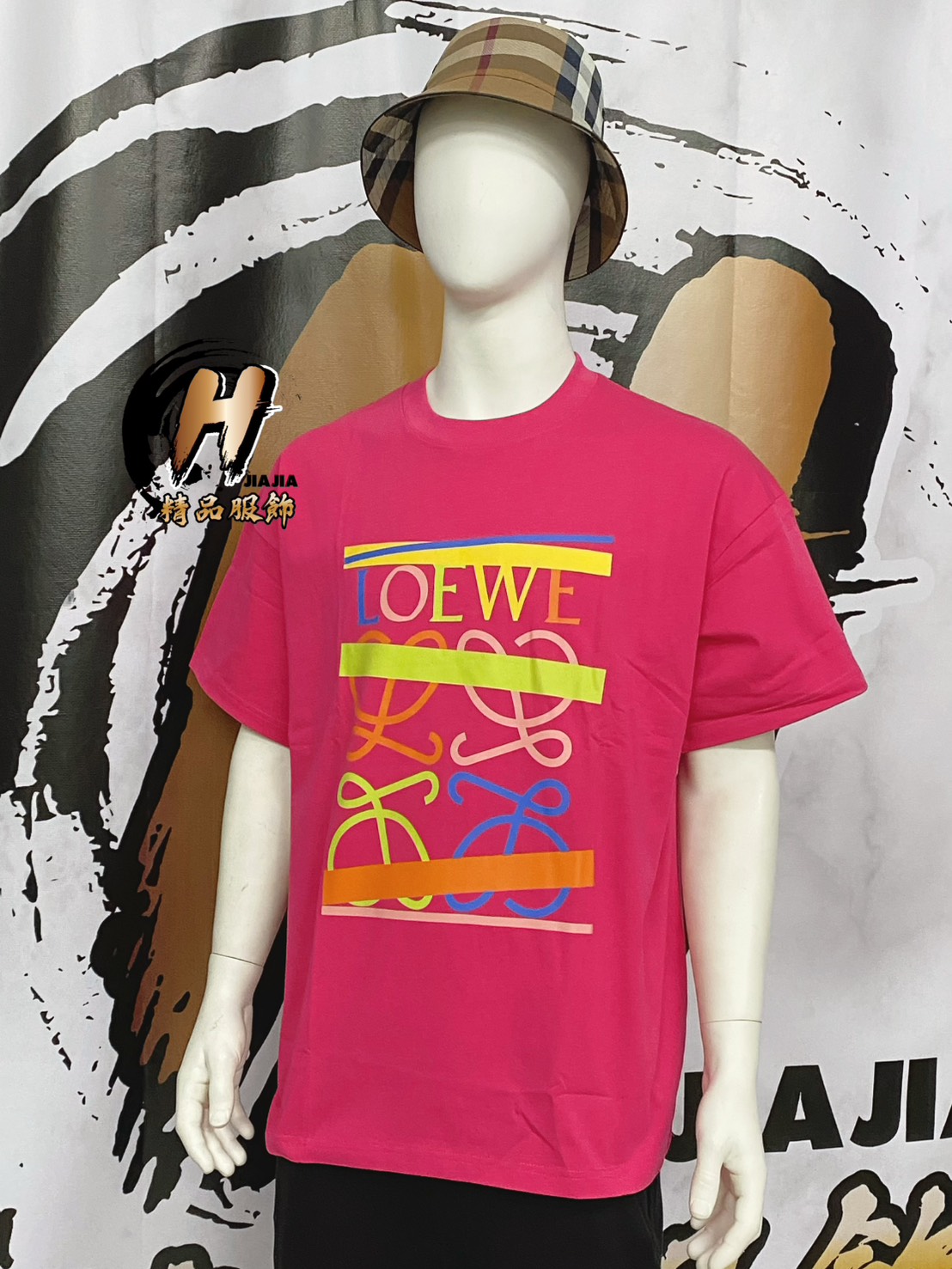 LOEWE 新款 彩虹字母 經典Logo 粉紅色 短袖