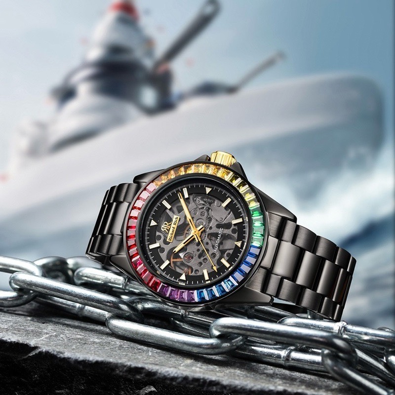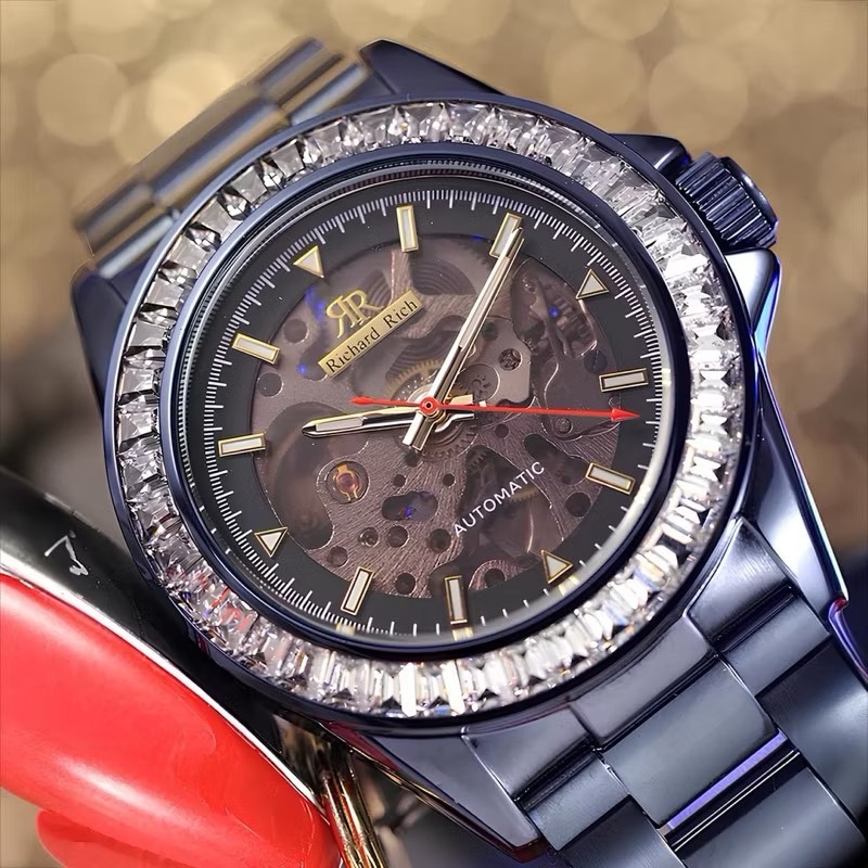 RICHARD RICH德國RR 海軍上將系列 暗夜黑彩鑽圈 縷空 自動機械錶 不鏽鋼 腕錶✅正品附發票