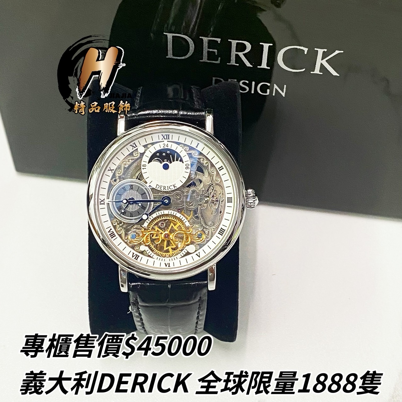 義大利 DERICK-德理克 全球限量1888支 日月星辰 皮錶帶 鏤空 機械錶✅正品公司貨
