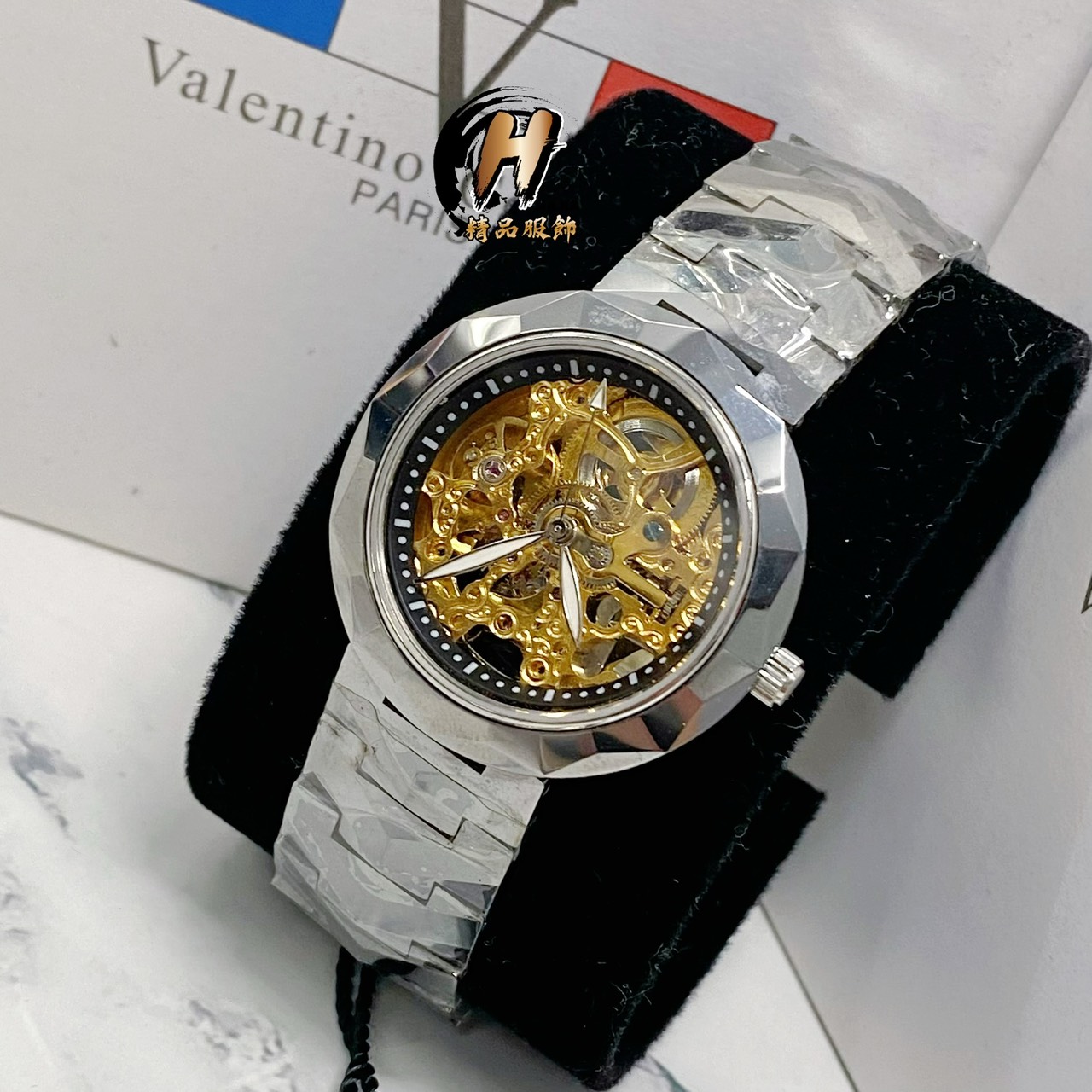 法國 Valentino 范倫鐵諾  豪華陀飛輪 鏤空水晶銀 機械錶