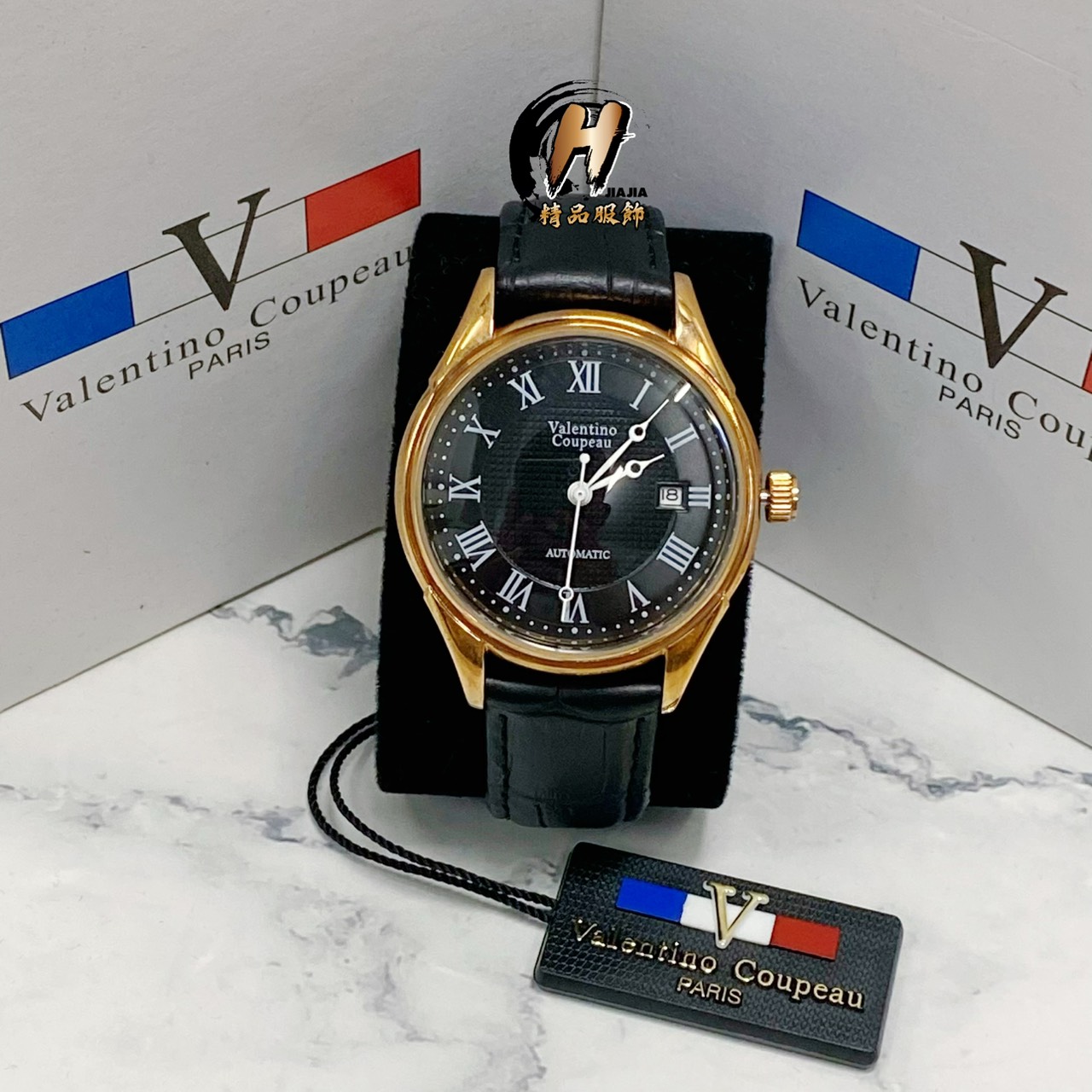 法國 Valentino 范倫鐵諾 羅馬數字 玫瑰金黑 機械錶 腕錶