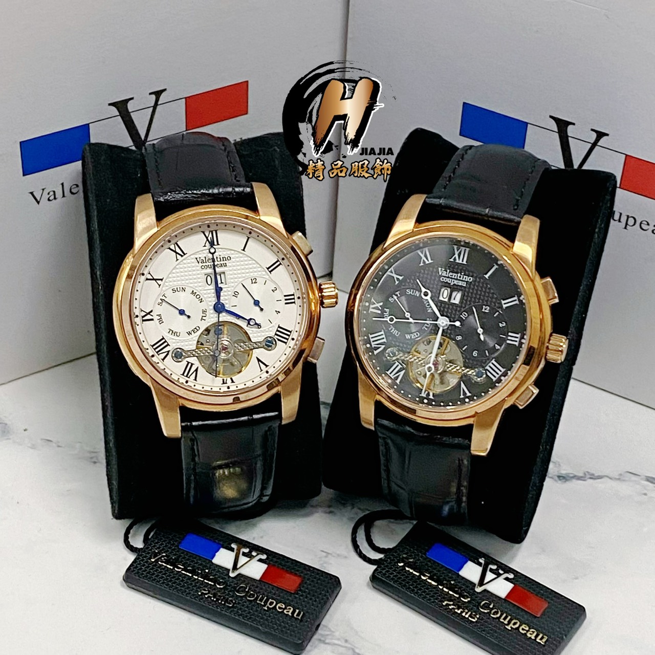 法國 Valentino 范倫鐵諾 羅馬數字 陀飛輪 鏤空 玫黑/玫白 機械錶